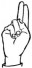На ћирилици написано БЛАЖА ЋОСИЋ састоји се из 10 слова [?]. Исписано ћириличном једноручном азбуком за глувонеме: